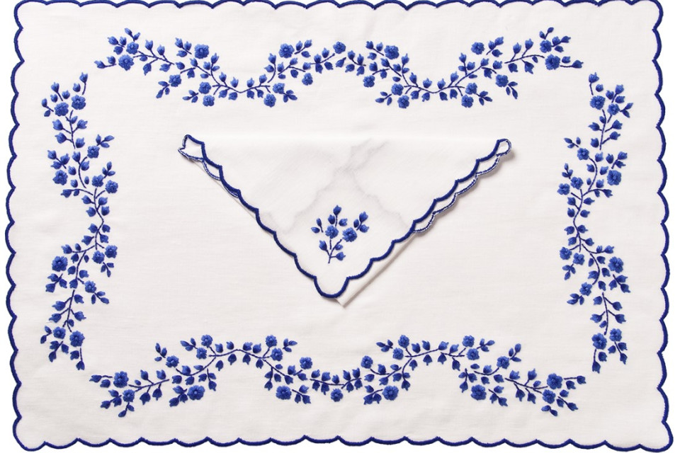 The typical embroidery of São Miguel is characterized by two shades of blue on linen in “matiz” stitch. Smooth and harmonious, it reflects the rare beauty of the islands. Botanical and countryside themes such as clovers, “gavinas”, brambles, ferns, carnations and intertwined hearts predominate.
