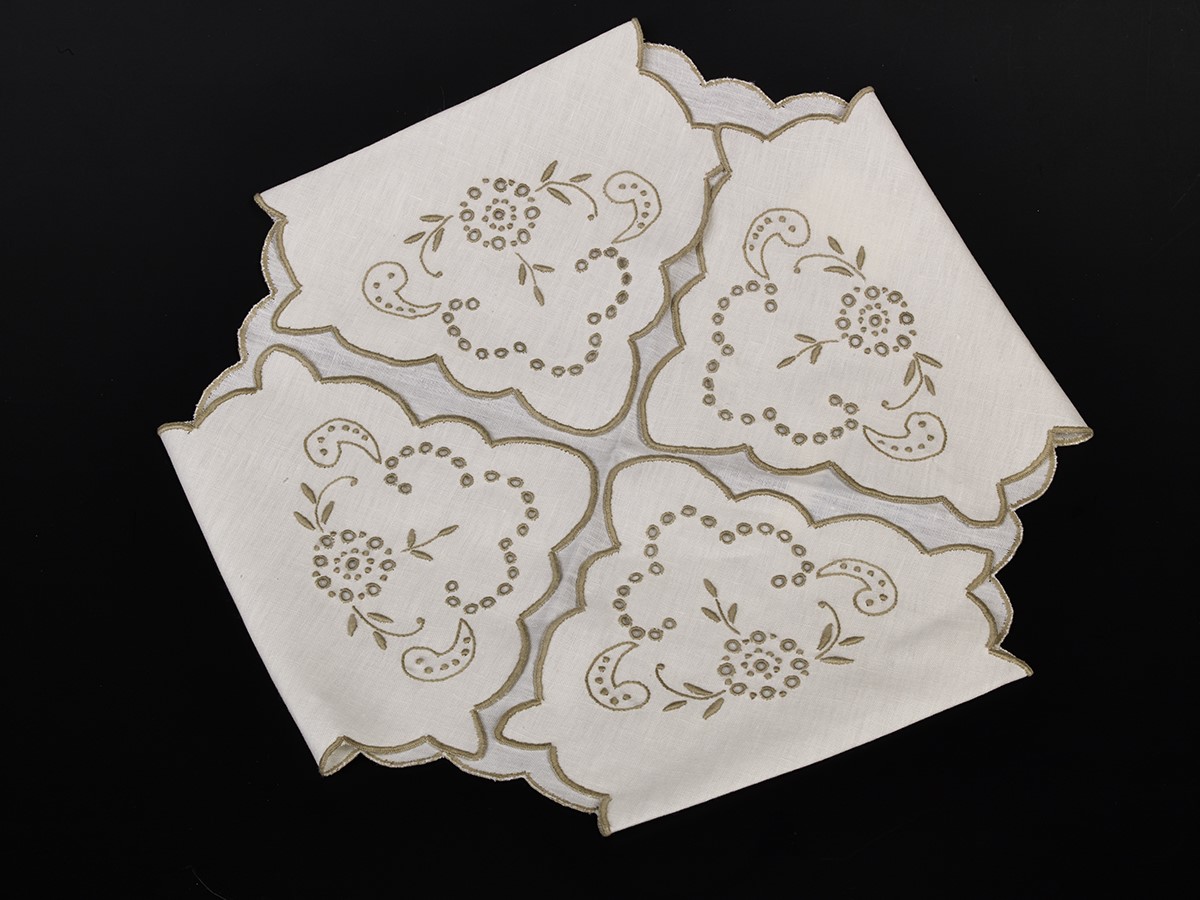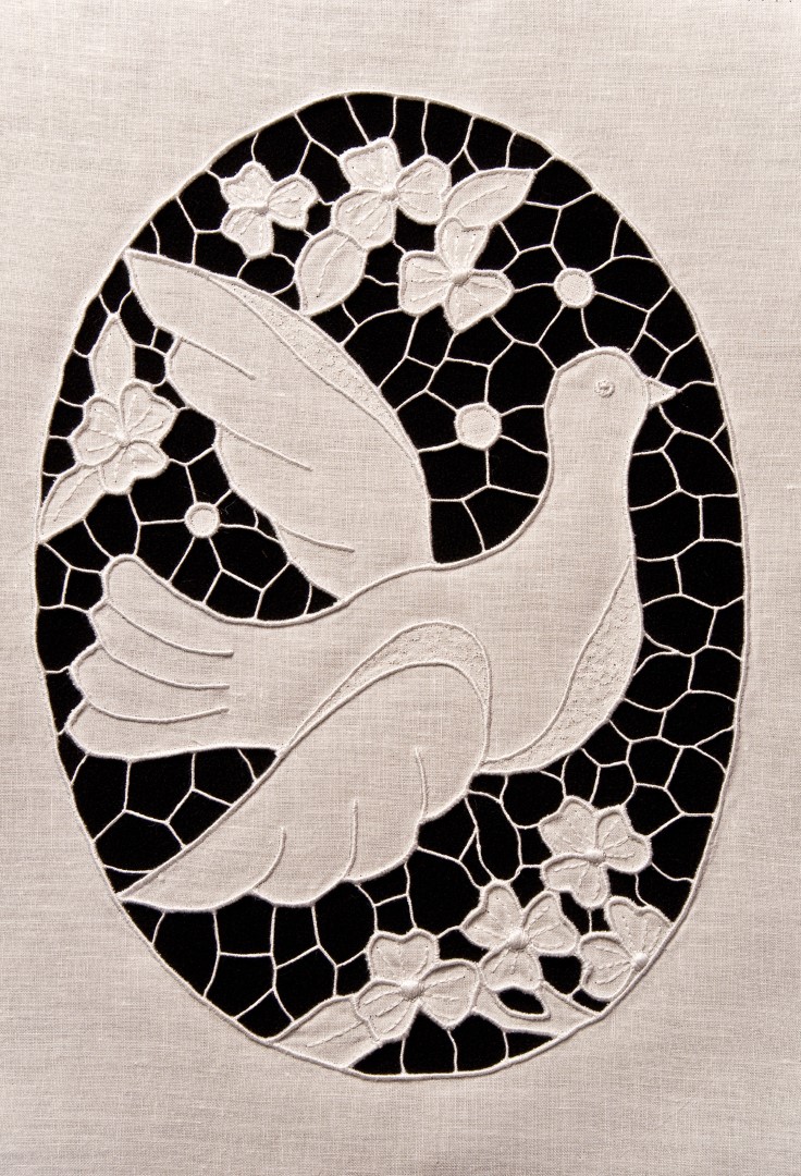 Branco e puro, o bordado terceirense revela a influência do bordado inglês e madeirense por privilegiar os pontos Richelieu e cheio.