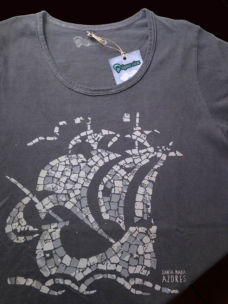 In her studio, Carolina Mallada, prints, in serigraphy, various textile items such as t-shirts, bags, using illustrations, of his own authorship, linked to flora and fauna typical of the Azores. Highlighting the hydrangeas, the shearwater, the dolphin, among others.