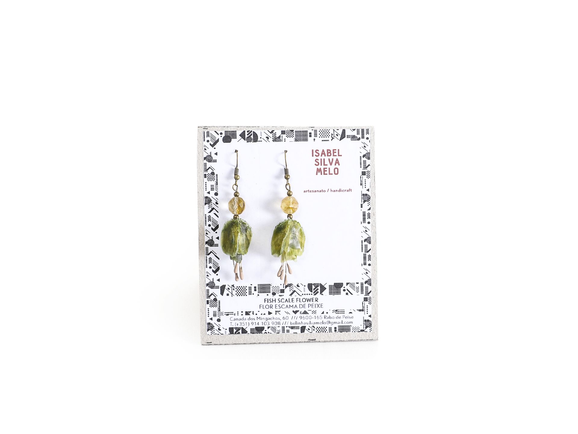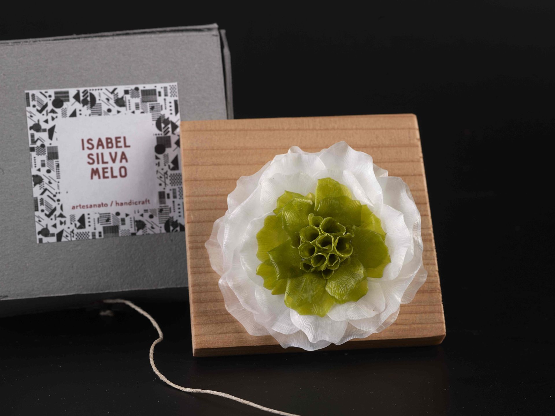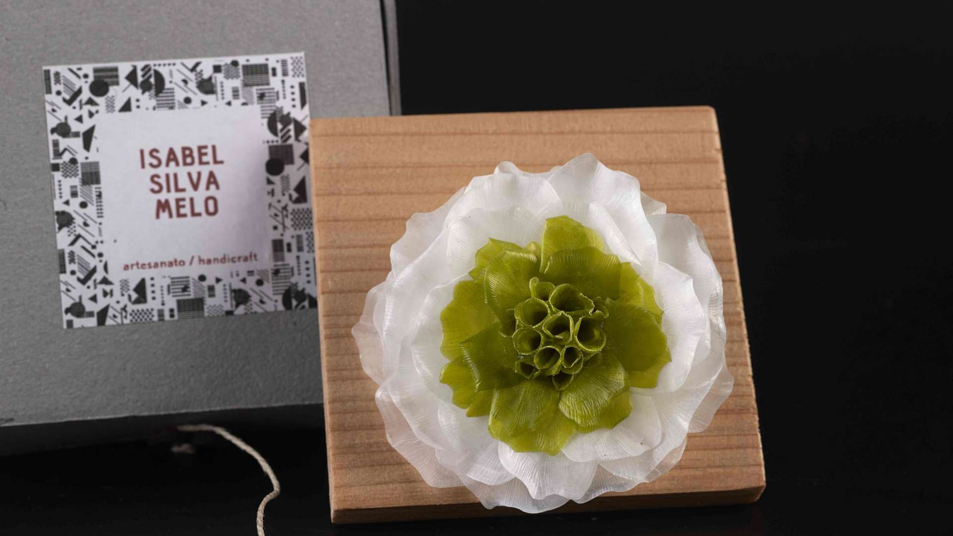 The sculptor Isabel Silva Melo congregates in her works two knowledges of the handicraft from São Miguel. The infantile imaginative load of her great-grandmother's Lapinhas, soon led the artisan to compose her own works with very unique characteristics. The works with fish scales came from the need to produce flowers for the ornamentation, emerging from then on a parallel passion. Not stopping there, she began to create with these leafy materials flowers in the form of costume jewelry pieces by giving them a very personal stamp through colors and very contemporary compositions.