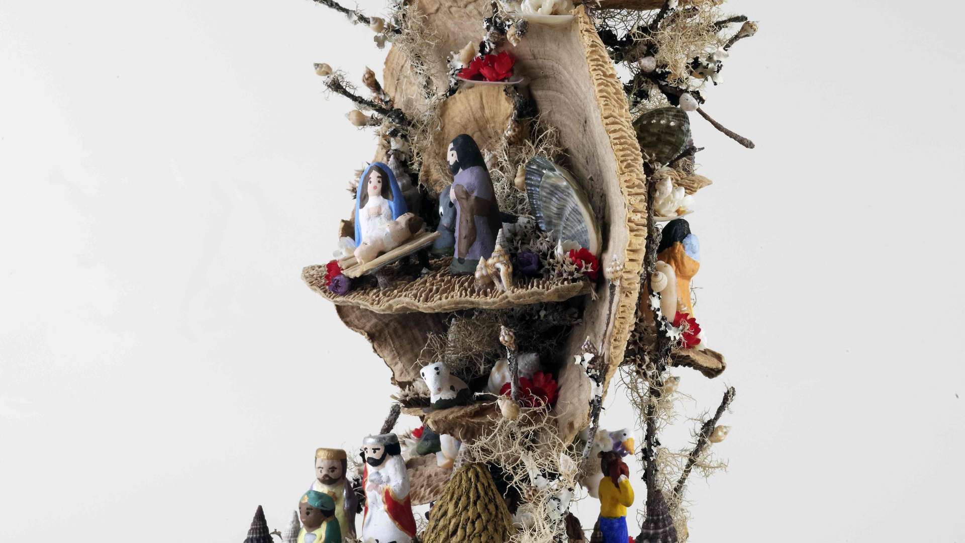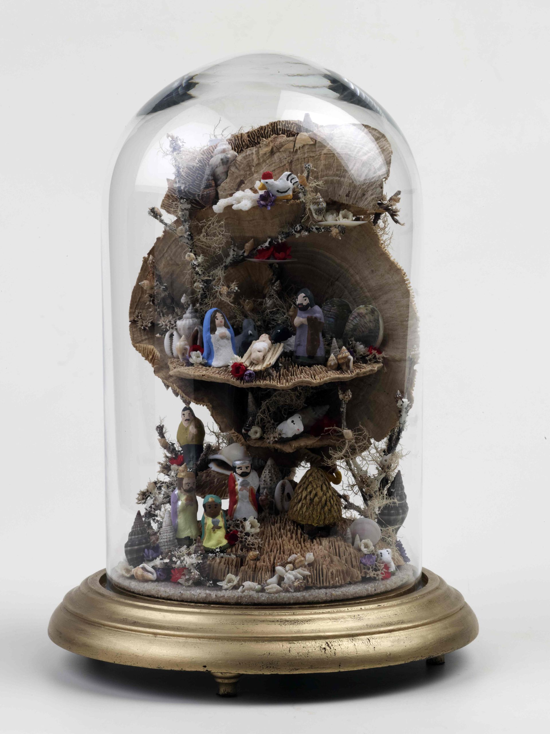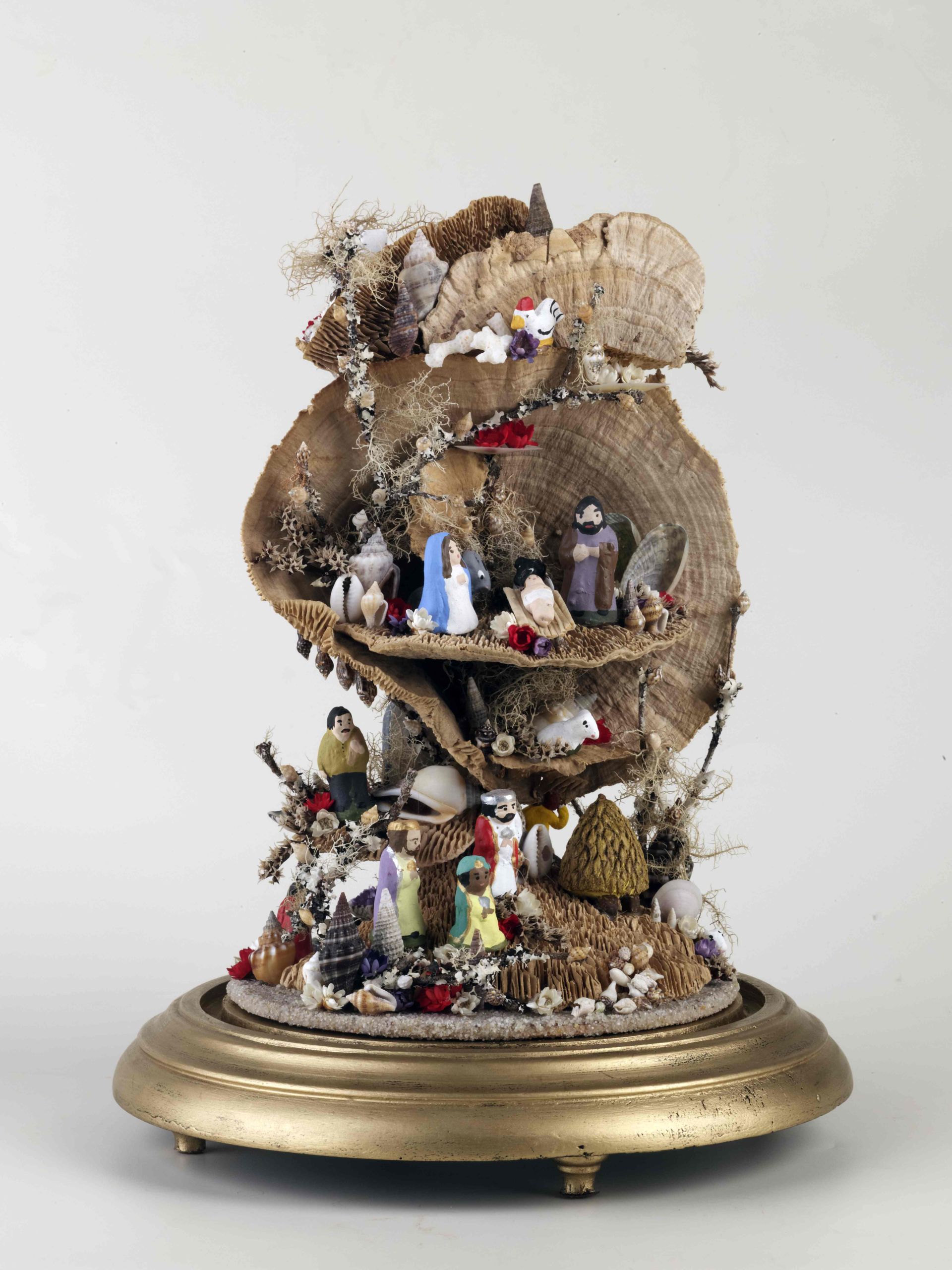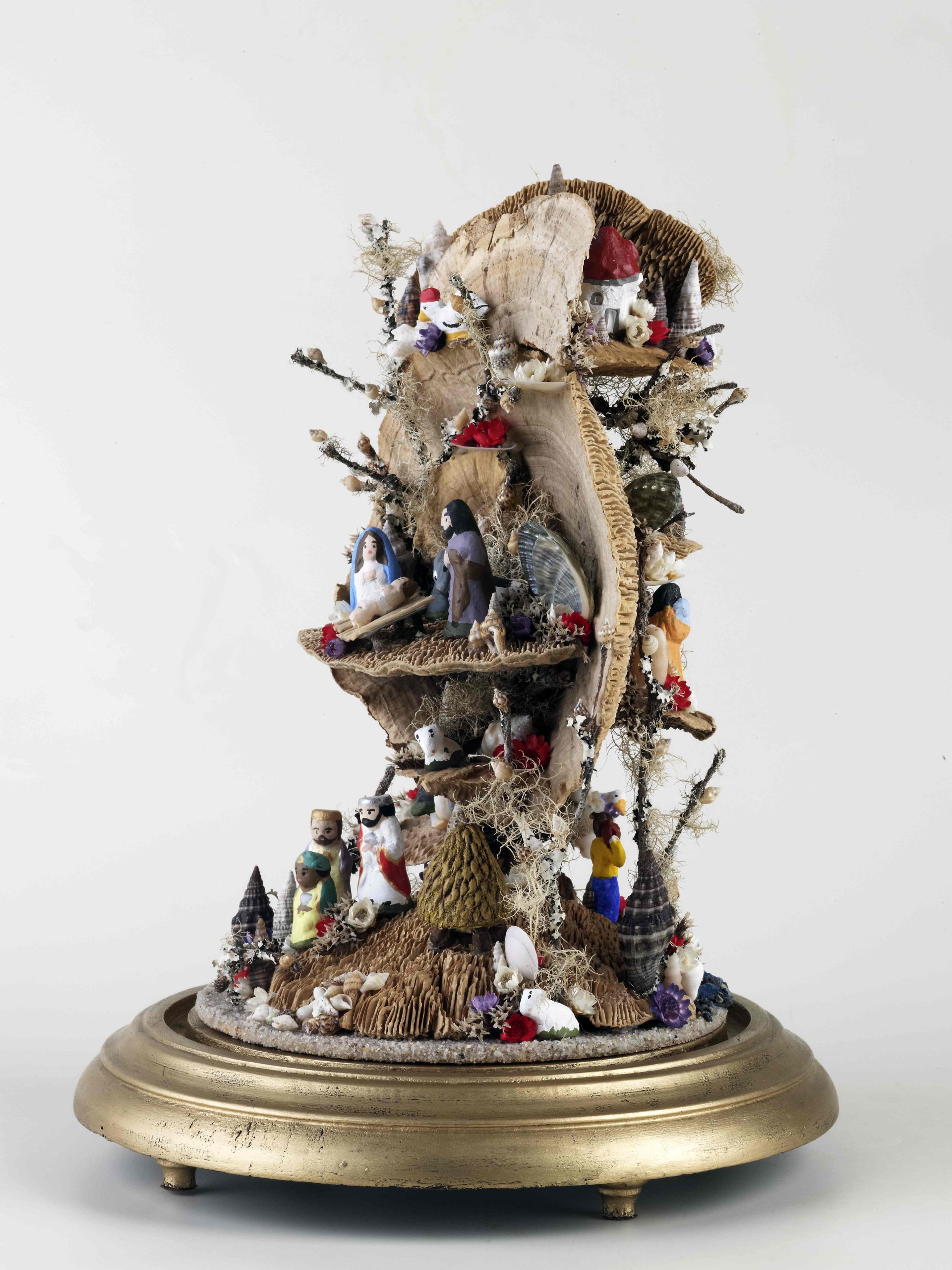 Gabriela Faria é uma jovem artesã empreendedora que abriu a sua loja e atelier na cidade da Ribeira Grande. Sem abandonar os suportes clássicos, a artesã apresenta-nos uma nova abordagem, aos presépios de lapinha, recorrendo a cogumelos secos, criando paisagens piramidais ou cilíndricas com efeito espiralado. Não são esquecidos os restantes elementos naturais, como os ramos e flores secas, os elementos marinhos (algas, conchas, búzios), intercalados por figurado cerâmico original, numa abordagem contemporânea aos temas clássicos.