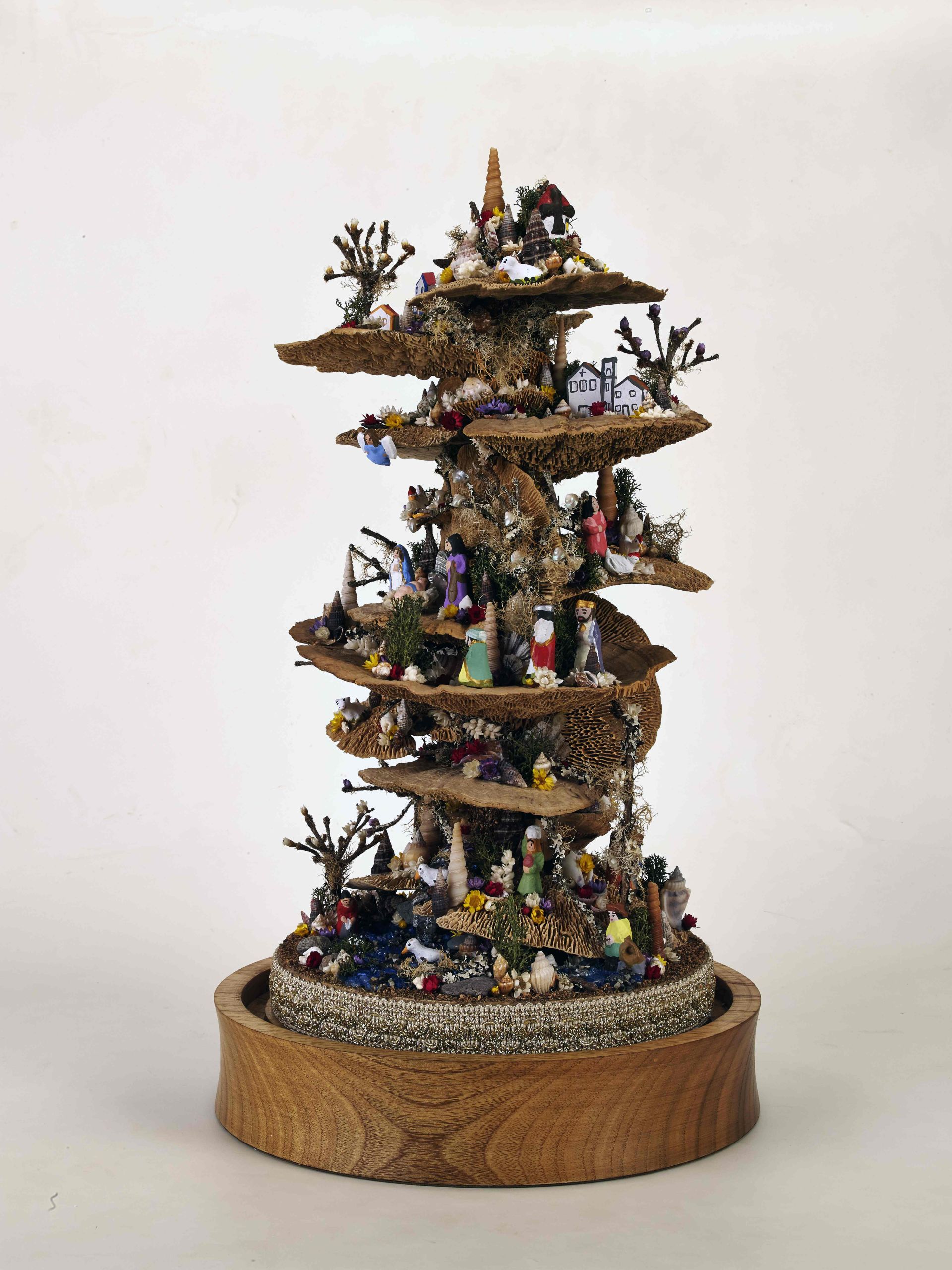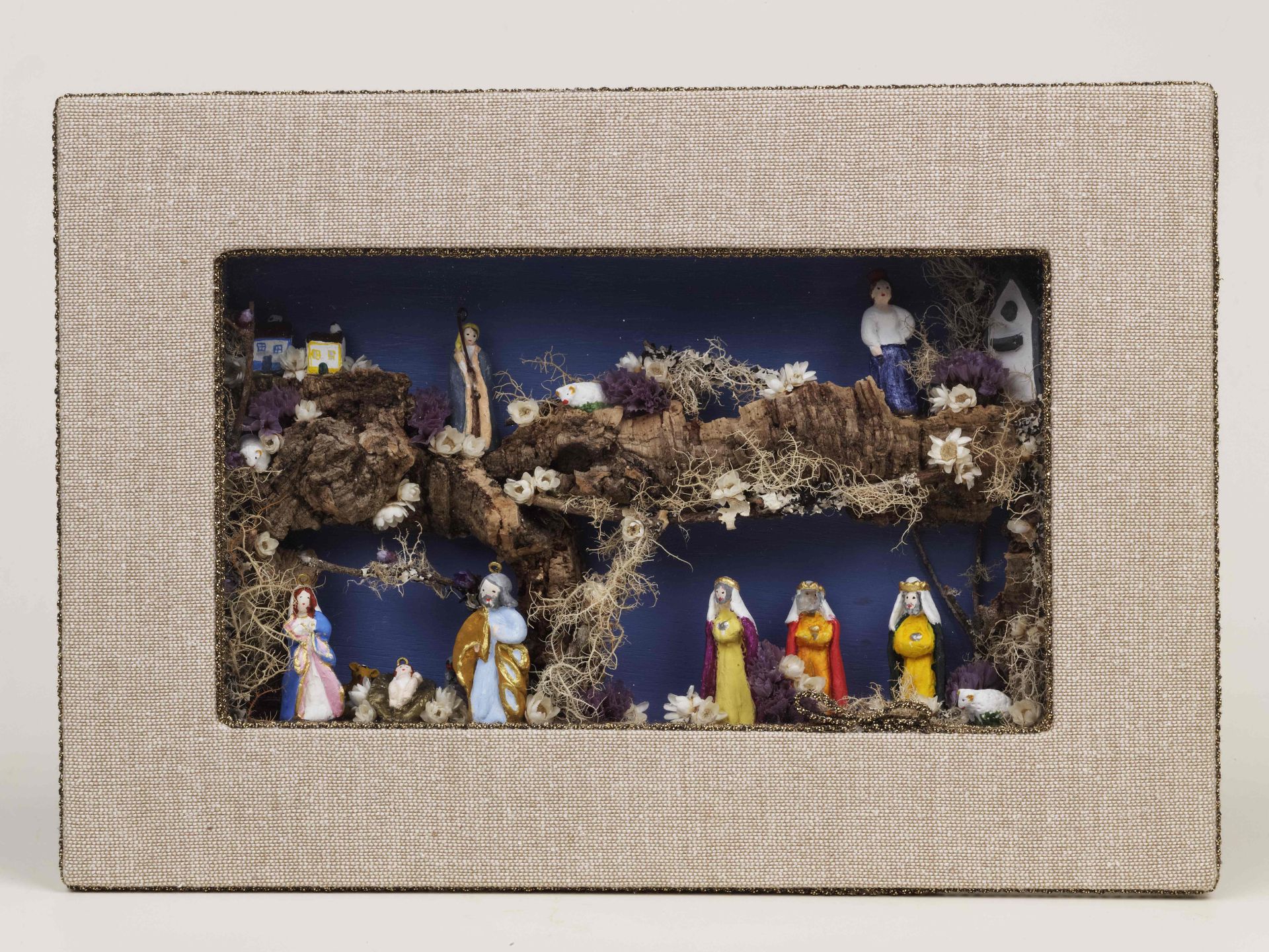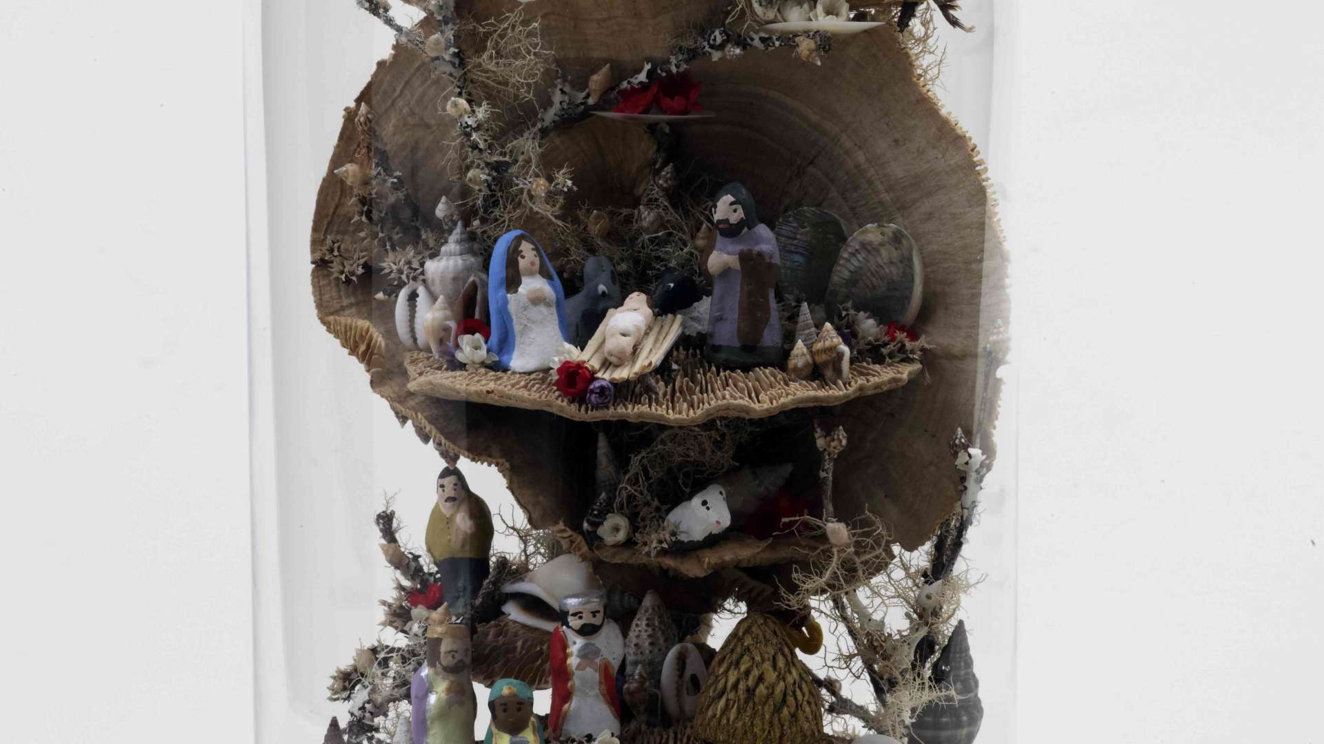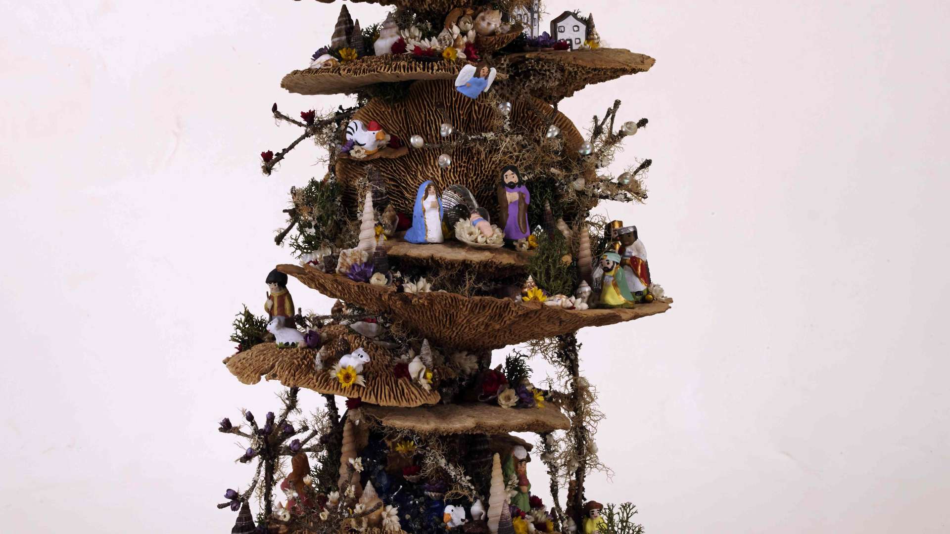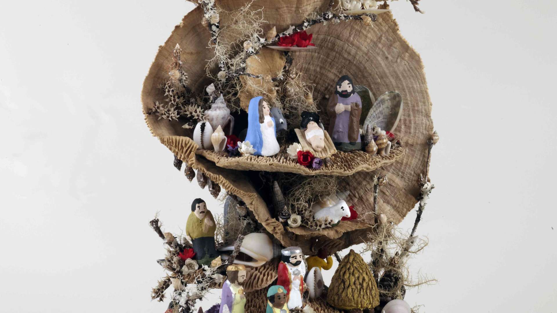 Gabriela Faria é uma jovem artesã empreendedora que abriu a sua loja e atelier na cidade da Ribeira Grande. Sem abandonar os suportes clássicos, a artesã apresenta-nos uma nova abordagem, aos presépios de lapinha, recorrendo a cogumelos secos, criando paisagens piramidais ou cilíndricas com efeito espiralado. Não são esquecidos os restantes elementos naturais, como os ramos e flores secas, os elementos marinhos (algas, conchas, búzios), intercalados por figurado cerâmico original, numa abordagem contemporânea aos temas clássicos.