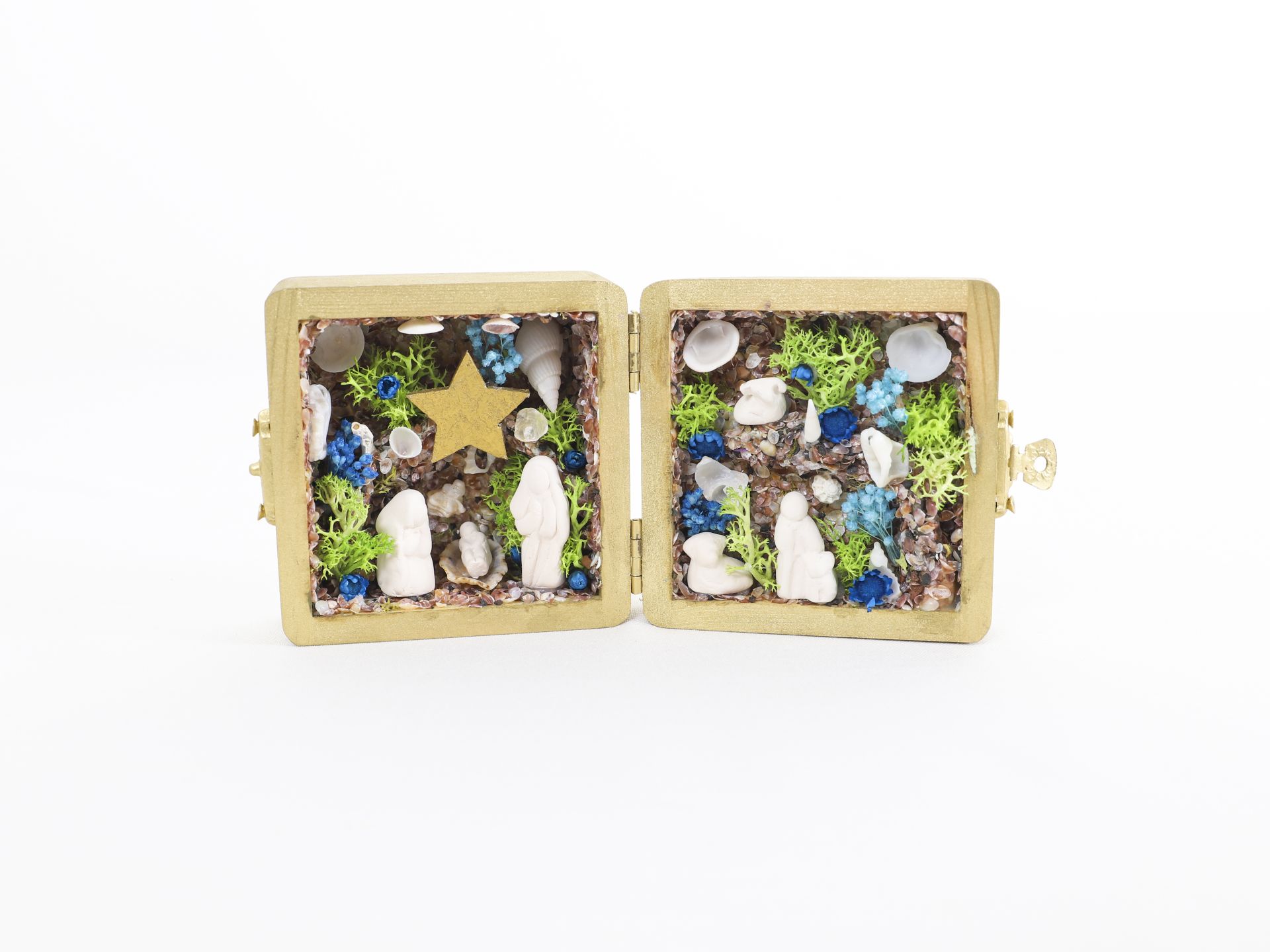Respondendo à necessidade de portabilidade destes trabalhos, começou por conceber Lapinhas “portáteis”, sob forma de dípticos que se fecham e abrem, assim como pequenas Lapinhas noutros formatos muito originais.